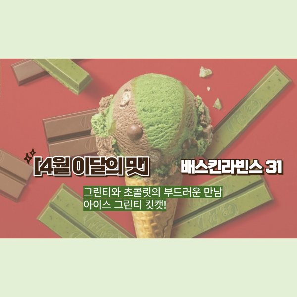 그린티와 초콜릿의 부드러운 만남, 배스킨라빈스 신상 ‘아이스 그린티 킷캣’ 요즘처럼 봄기운이 완연한 ...